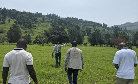 Photo: Activity Infrastructure Team (Mercy Corps and Tetratech) on a site selection initial visit in Sake, North Kivu