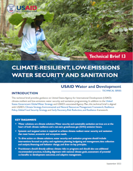 This technical brief provides guidance on USAID’s climate-resilient and low-emissions water security and sanitation programming.