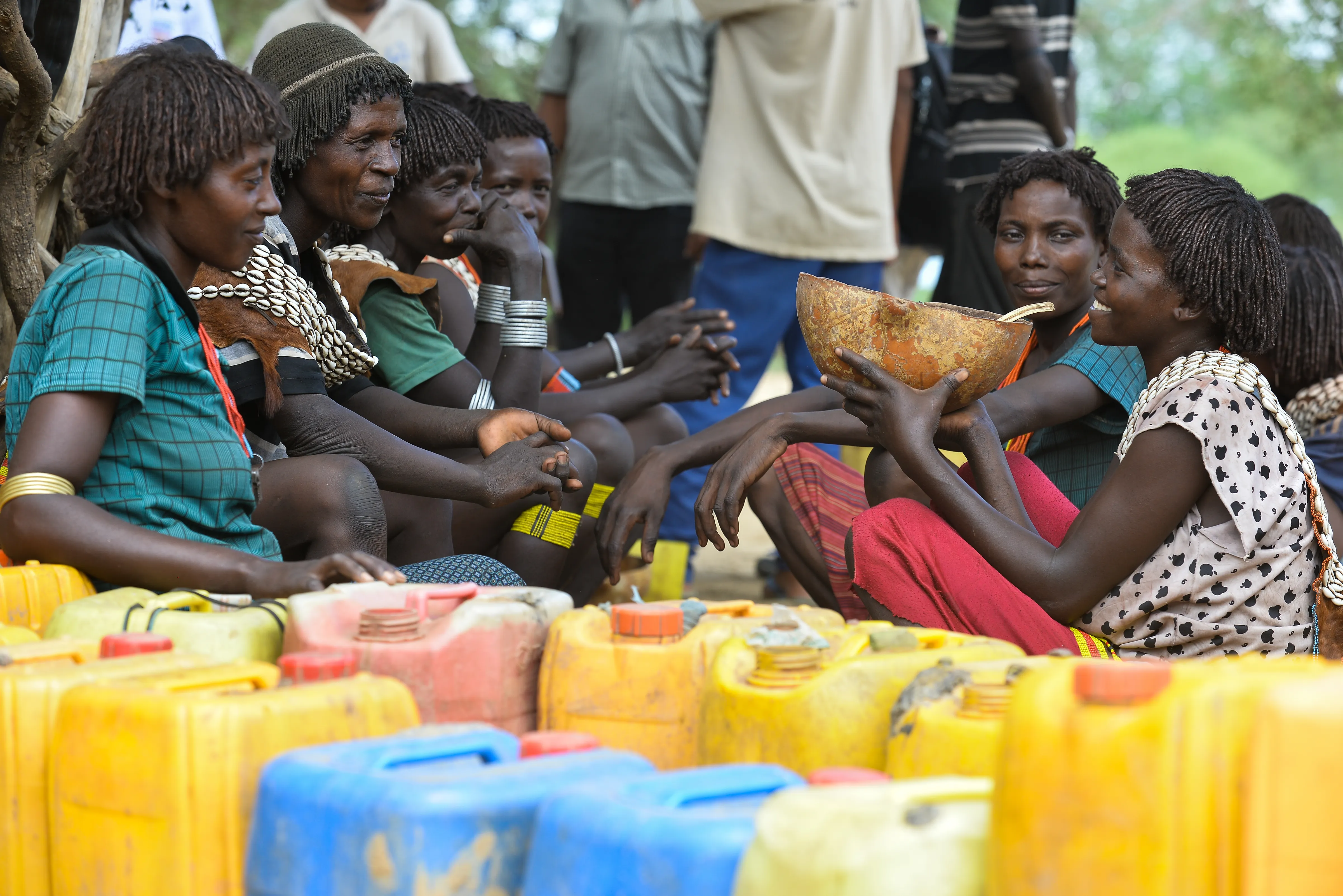 In South Omo’s Bena Tsemay district, local women spend less time retrieving water and more time strengthening community bonds due to newly constructed water points facilitated by the local water bureau and USAID. Photo credit: Michael Tewelde