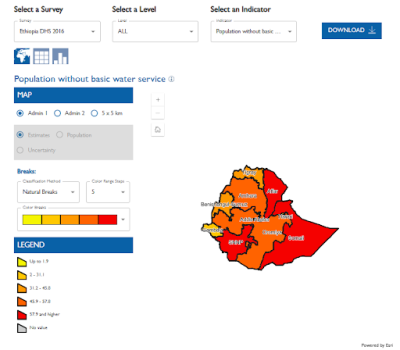 USAID’s Demographic and Health Surveys (DHS) Program’s Local Data Mapping Tool (link is external) allows users to explore and compare Admin 1 estimates, modeled Admin 2 estimates, and modeled estimates at a resolution of 5×5 km of key water, sanitation, and hygiene (WASH) indicators. Currently, there are WASH maps available under the Local Data Mapping Tool for nine Global Water Strategy High Priority Countries: Ethiopia, Haiti, Liberia, Madagascar, Mali, Nigeria, Rwanda, Uganda, and Zambia.