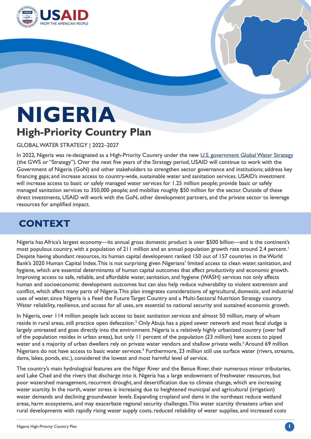 In 2022, Nigeria was re-designated as a High-Priority Country. USAID is working with partners in Nigeria to: