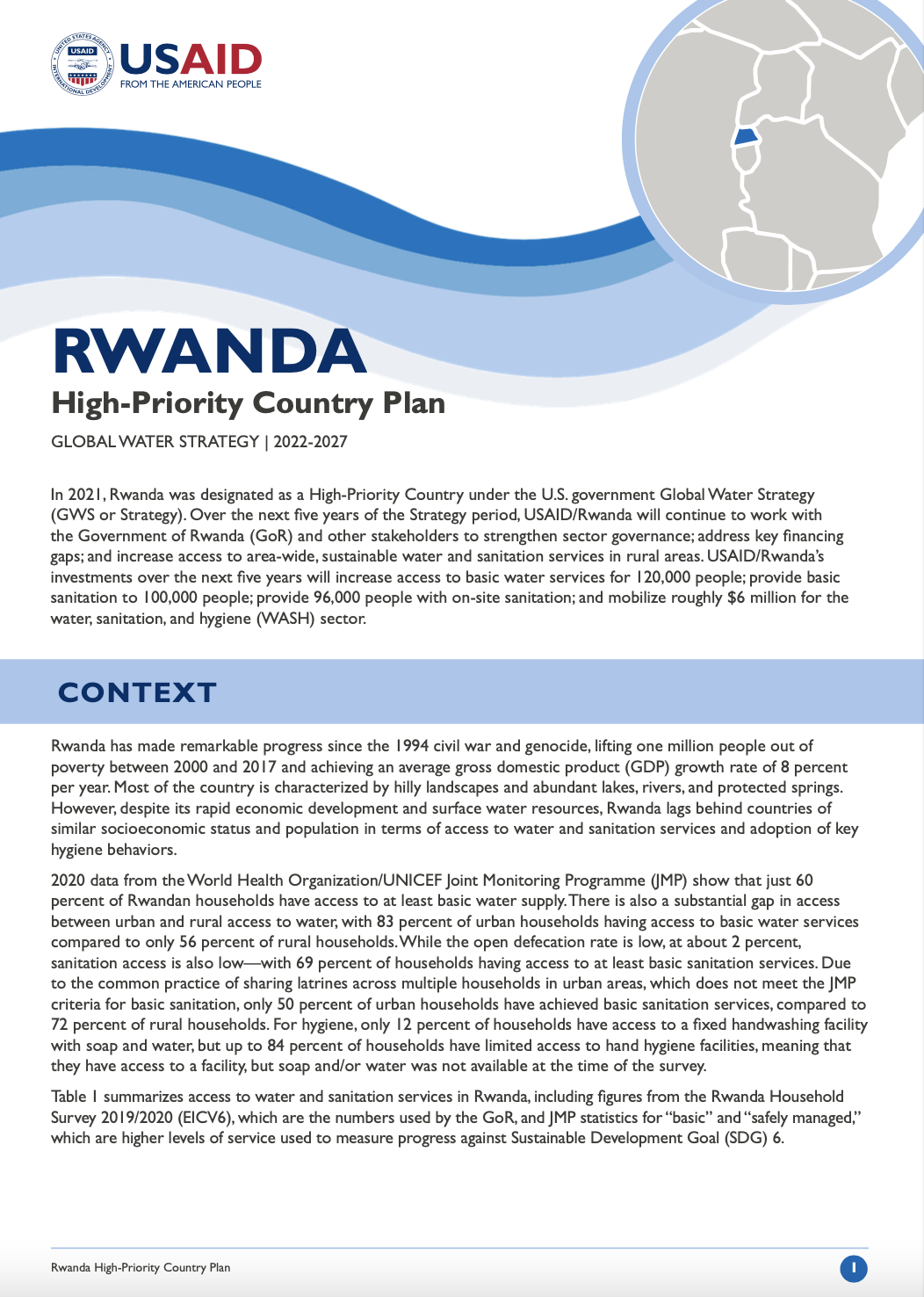 Rwanda was designated a High Priority Country in 2021. USAID is working with partners in Rwanda to: