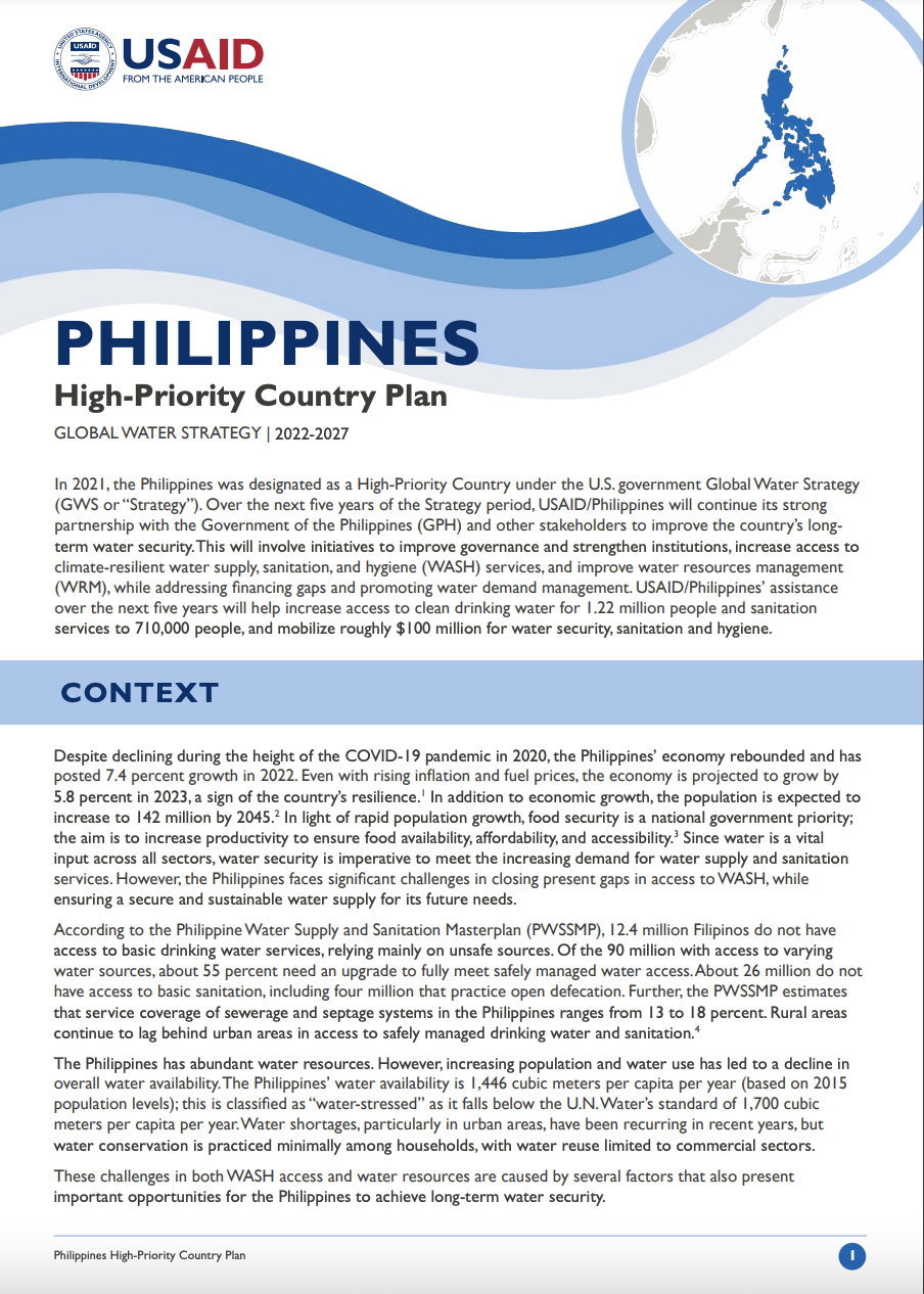 The Philippines was designated a High Priority Country in 2021. USAID is working with partners in the Philippines to: