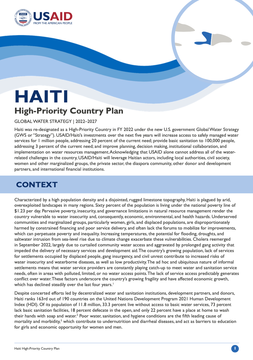 In 2022, Haiti was re-designated as a High-Priority Country. USAID’s investments are expected to help: